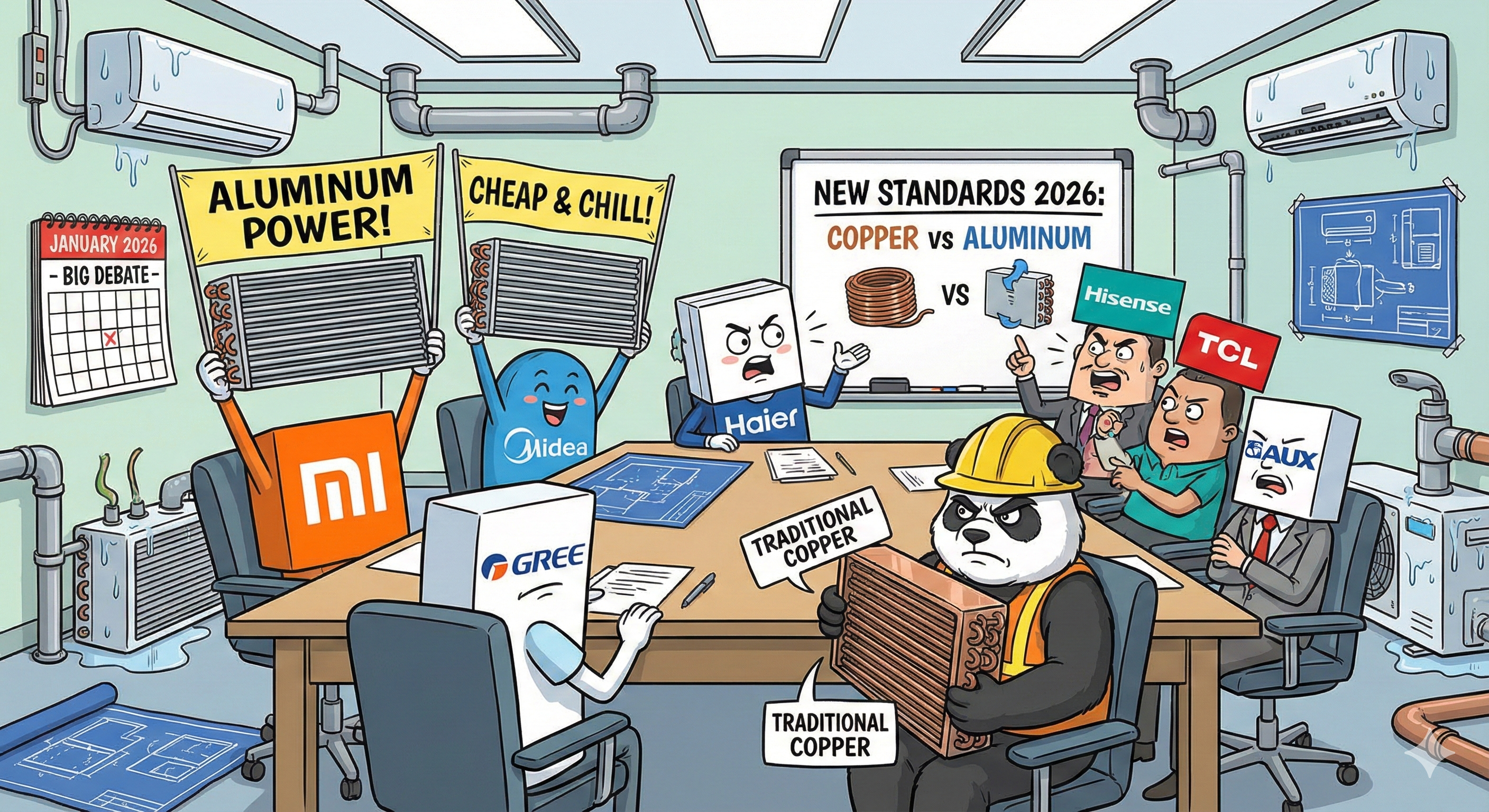 В настоящее время крупные компании по производству кондиционеров, такие как Gree , Midea , Haier , Xiaomi, Hisense , TCL и AUX, совместно участвуют в пересмотре национального стандарта «Теплообменники для комнатных кондиционеров», и новый раунд обсуждений стандарта запланирован на январь 2026 года. Кроме того, соответствующие национальные стандарты по «замене меди алюминием» также находятся в стадии пересмотра и вскоре пройдут новый раунд обсуждений. Компания Gree четко обозначила свою позицию, заявив, что не будет заменять медь алюминием в кондиционерах до тех пор, пока не будет в этом на 100% уверена. Своим отсутствием на сессии по «соглашению о самодисциплине» Gree в очередной раз продемонстрировала свое отношение к применению технологии «замена меди алюминием».